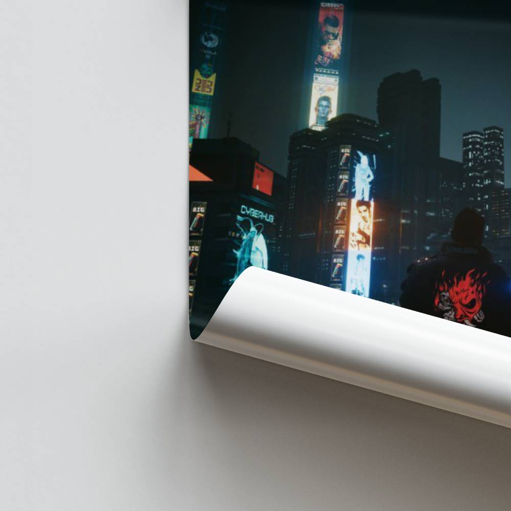 Immergiti nel cuore dell'atmosfera neon e distopica del famoso videogioco Cyberpunk con questo poster di Night City. Quest'opera raffigura la vibrante città notturna piena di pericoli, emblematica del gioco. Un oggetto da collezione essenziale per ogni fan di questo universo cyberpunk, stampato su supporto di alta qualità.