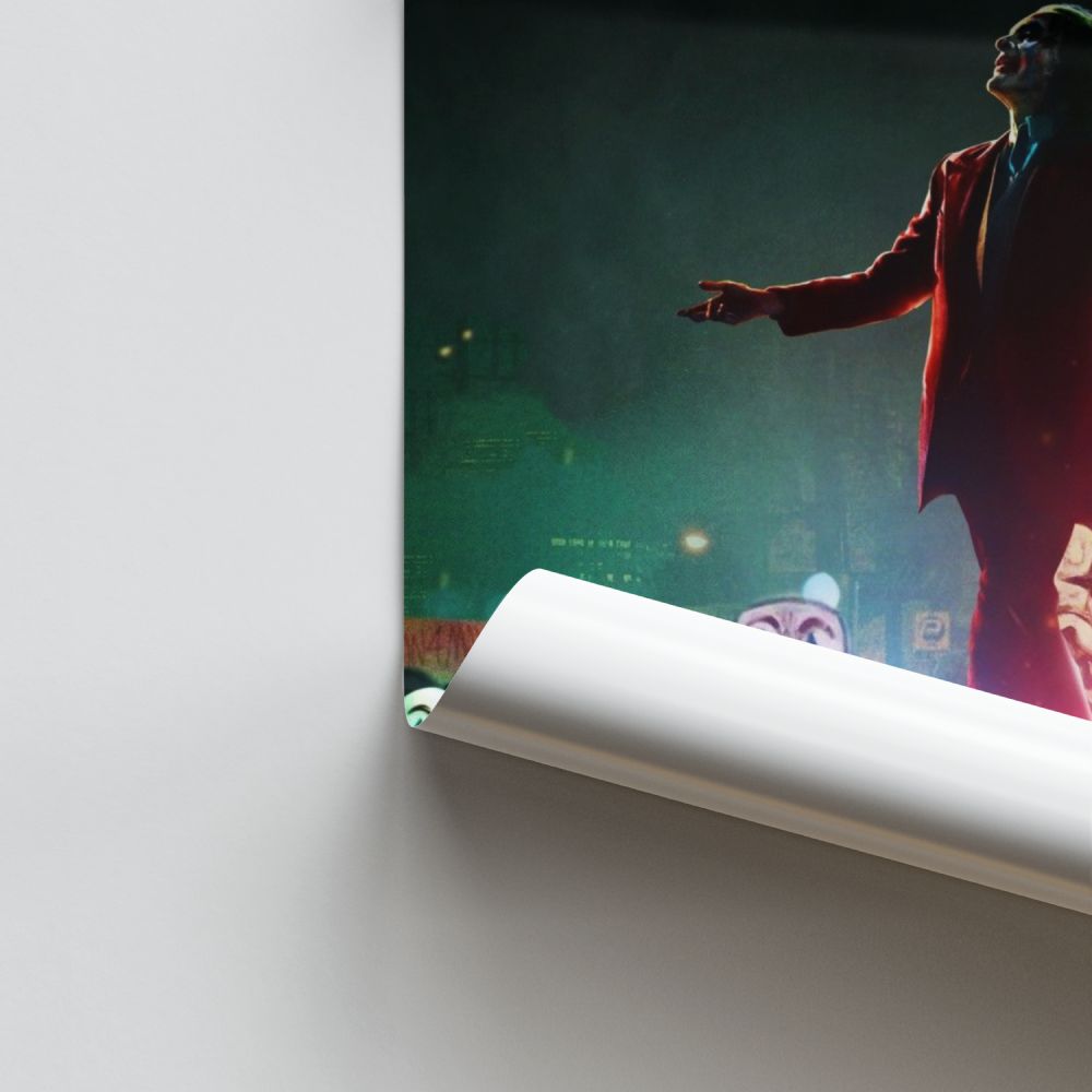 Immergiti nell'oscuro mondo di Gotham con il nostro esclusivo poster della Joker Collection, con l'indimenticabile incarnazione del Joker di Joaquin Phoenix. Questo personaggio complesso, simbolo del caos e dell'insubordinazione, viene colto in tutta la sua intensità, pronto a sfidare l'ordine costituito. Stampato su carta di alta qualità, questo poster aggiungerà un tocco di audacia e ribellione al tuo ambiente.