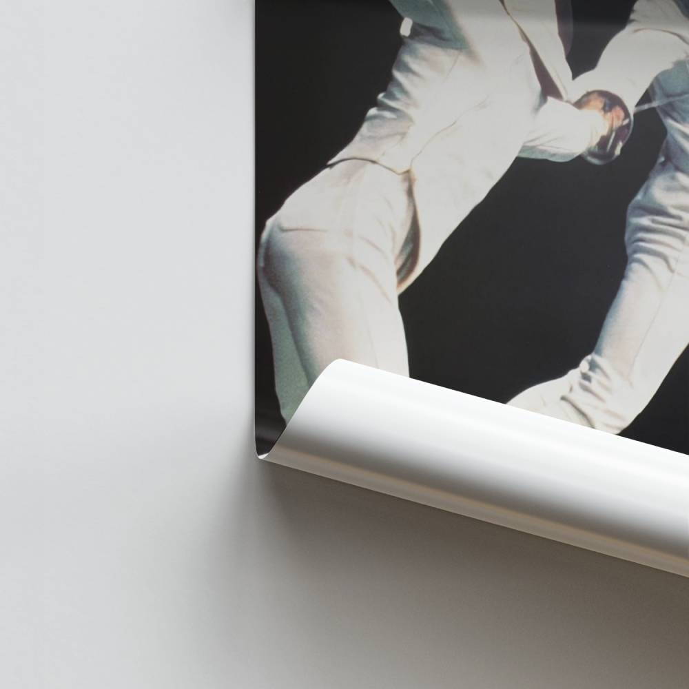 Esprimi il tuo amore per la scherma con questo poster Fencing Moon dal design elegante. Ispirata all'eleganza e alla precisione di questo sport, quest'opera presenta uno schermidore al chiaro di luna, evocando la concentrazione e la bellezza del duello. Un pezzo centrale per la collezione di ogni appassionato di scherma, stampato su materiale di alta qualità.