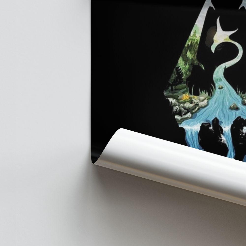 Immergiti nell'epica atmosfera di Skyrim con questo poster dell'iconico logo. Questa grafica accattiva...